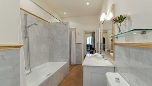 Apartment on one level in classical Florentine style (105 sq.mt - 1130 sq.ft), can host up to 4 people and offers one bedroom and a full bathroom. At the entrance there is the living roomwith 2 twin beds also convertible into sofas and flat screen TV. Follows the first bedroom with double bed(mattress 160cm - cannot be divided). On the left is a corridor which leads to the modern and well equipped kitchen, furnished with 4 seater dining table and to the walk in closet and the bathroom with bathtube and shower. There is also a connecting door to the kitchen from the bathroom.