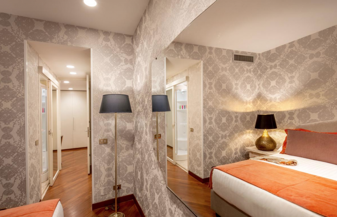 The “Piazza di Spagna 90” Luxury Apartment is the perfect choice for a family experience in Rome or for a luxurious journey for a Maximum of 6. This modern, strategically located Apartment in the heart of Rome is composed of two bedrooms, two bathrooms with Jacuzzi bathtube and multifunctional sauna/hydromassage Teuco shower . The Apartment also has a living room with a comfortable sofa and a fully equipped kitchen/dining room and is located at the 2nd floor with stunning views of Piazza di Spagna from either from the living room or the master bedroom.
